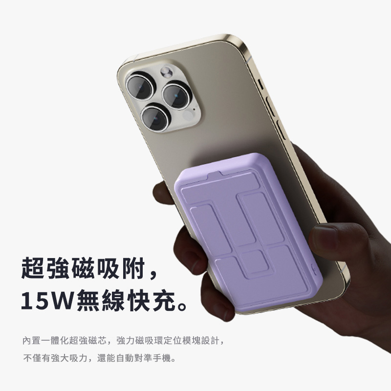 Magsafe W014磁吸無線充電寶,10000毫安,小巧輕便攜快充移動電源,自帶支架
