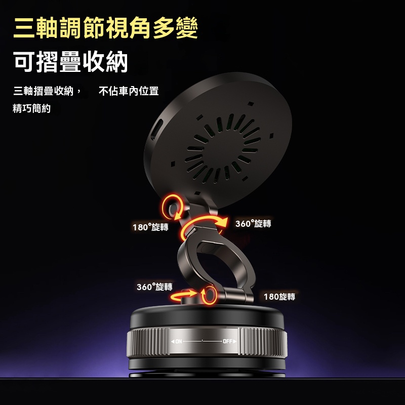 2025 D1W三軸旋轉折疊真空吸盤手機支架,magsafe磁吸無線充電車載桌面便攜