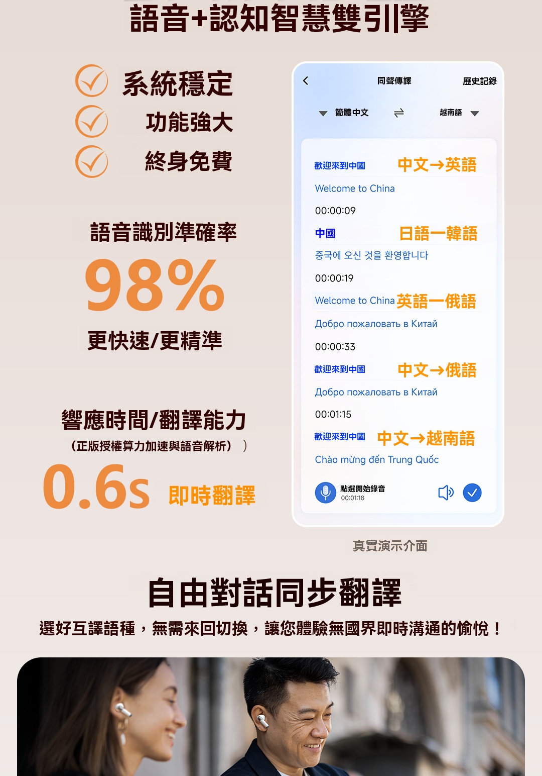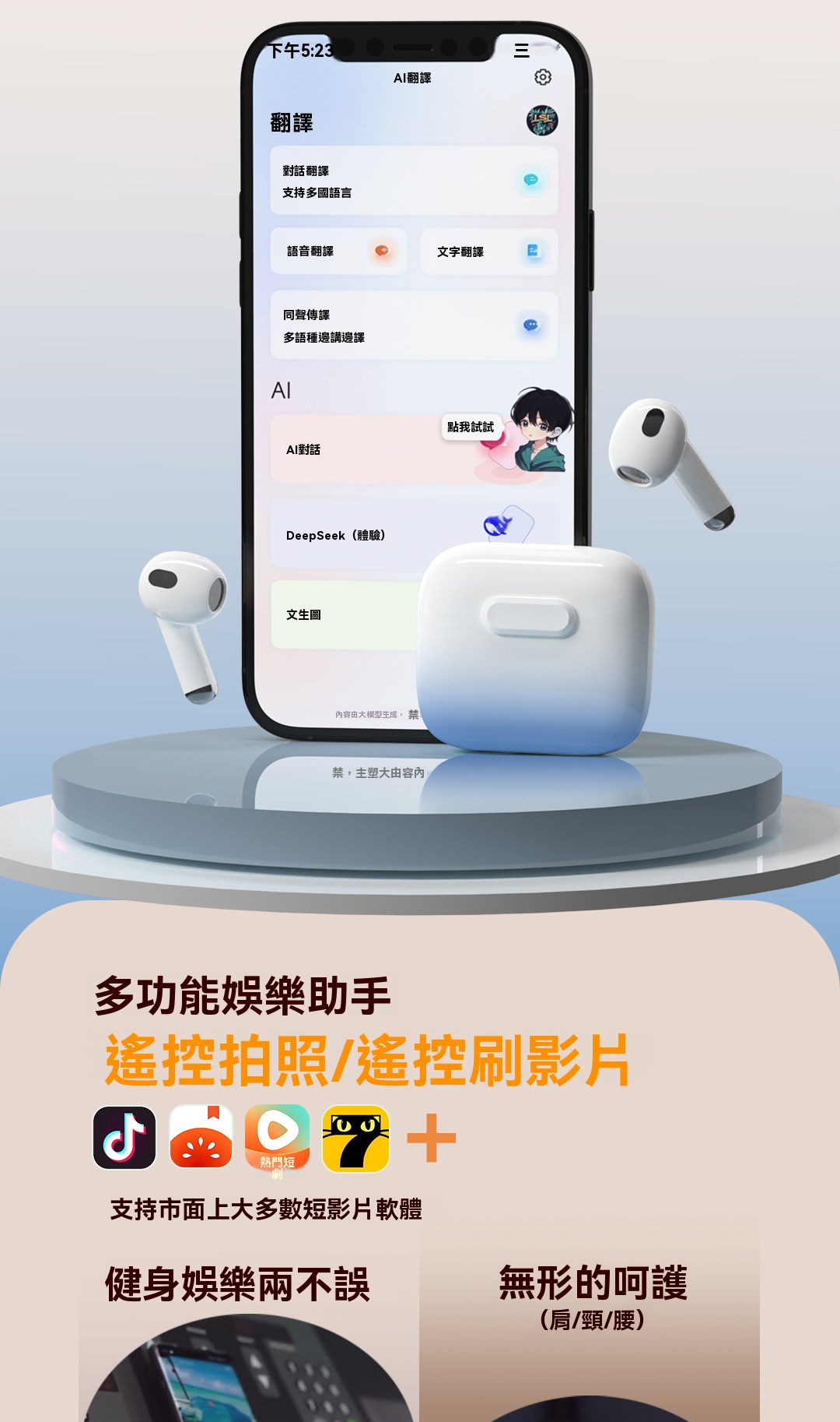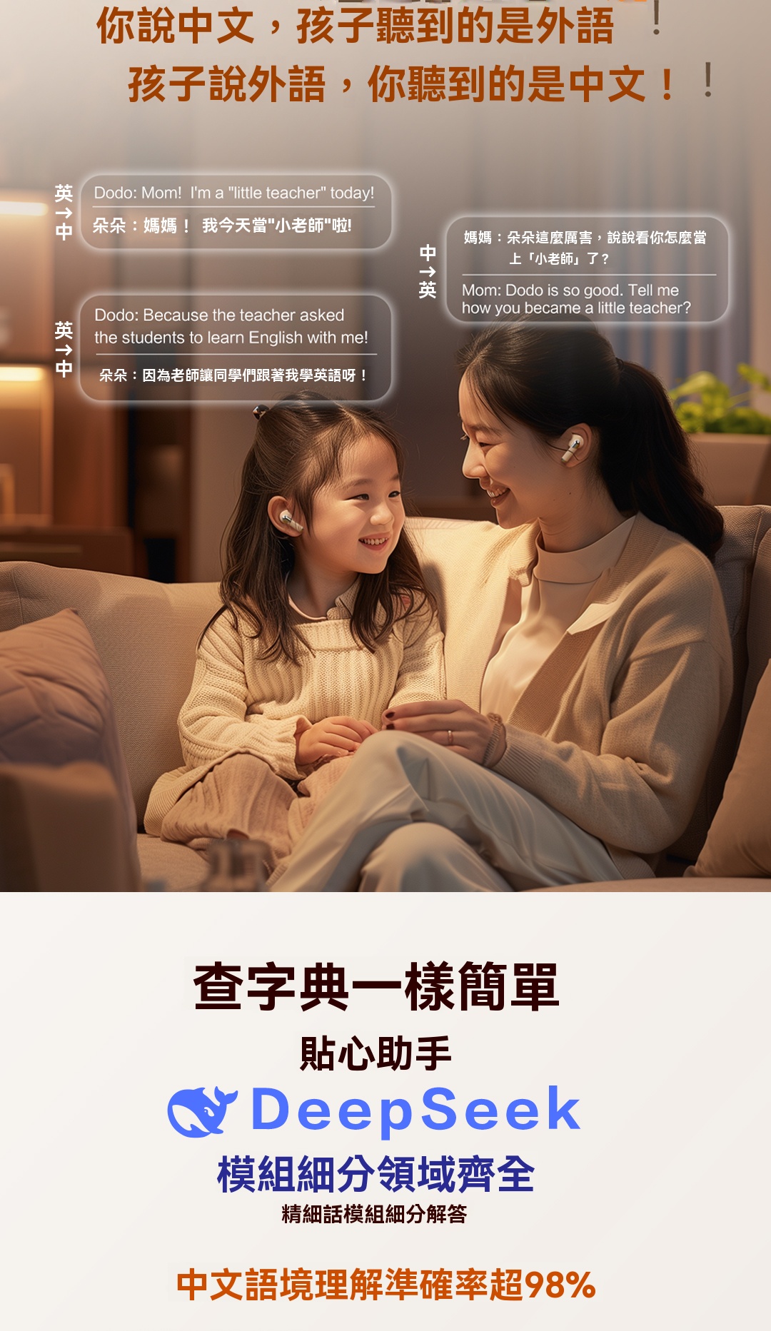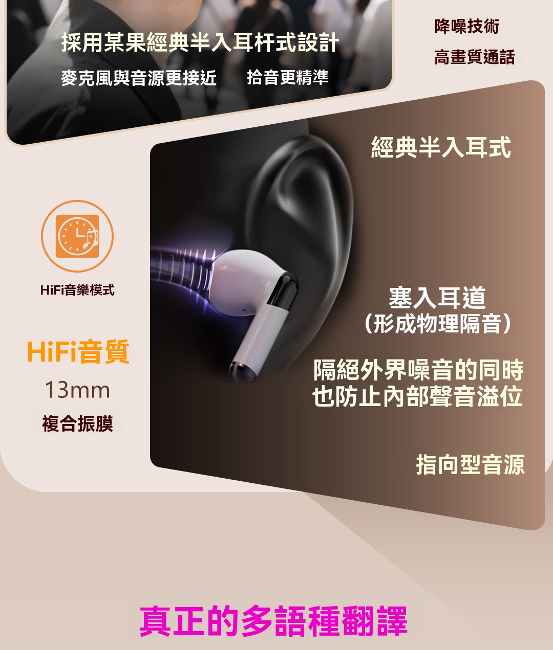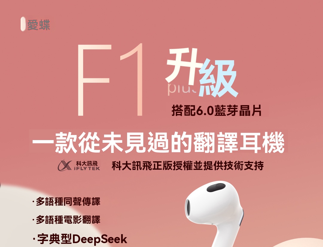 愛蝶 2025 AI智能翻譯藍牙耳機/主動降噪/半入耳式/適用蘋果安卓