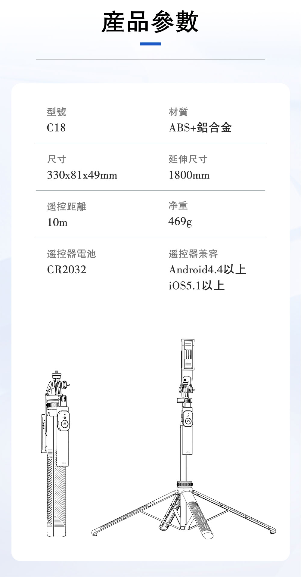 材質:ABS+鋁合金桿